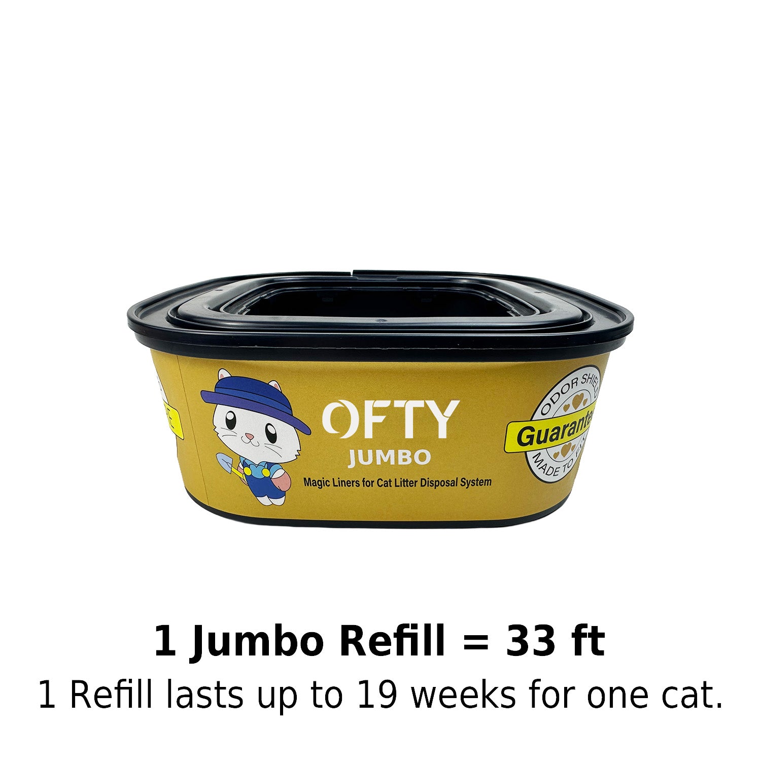 - EXTENDED USE, MINIMAL WASTE: Our OFTY jumbo refill bags provide an impressive 33 feet each, offering twice the length of standard refills while using up to 35% less plastic. This means you can enjoy a full year's supply with just four bags, making them a cost-effective and eco-friendly choice for cat owners.