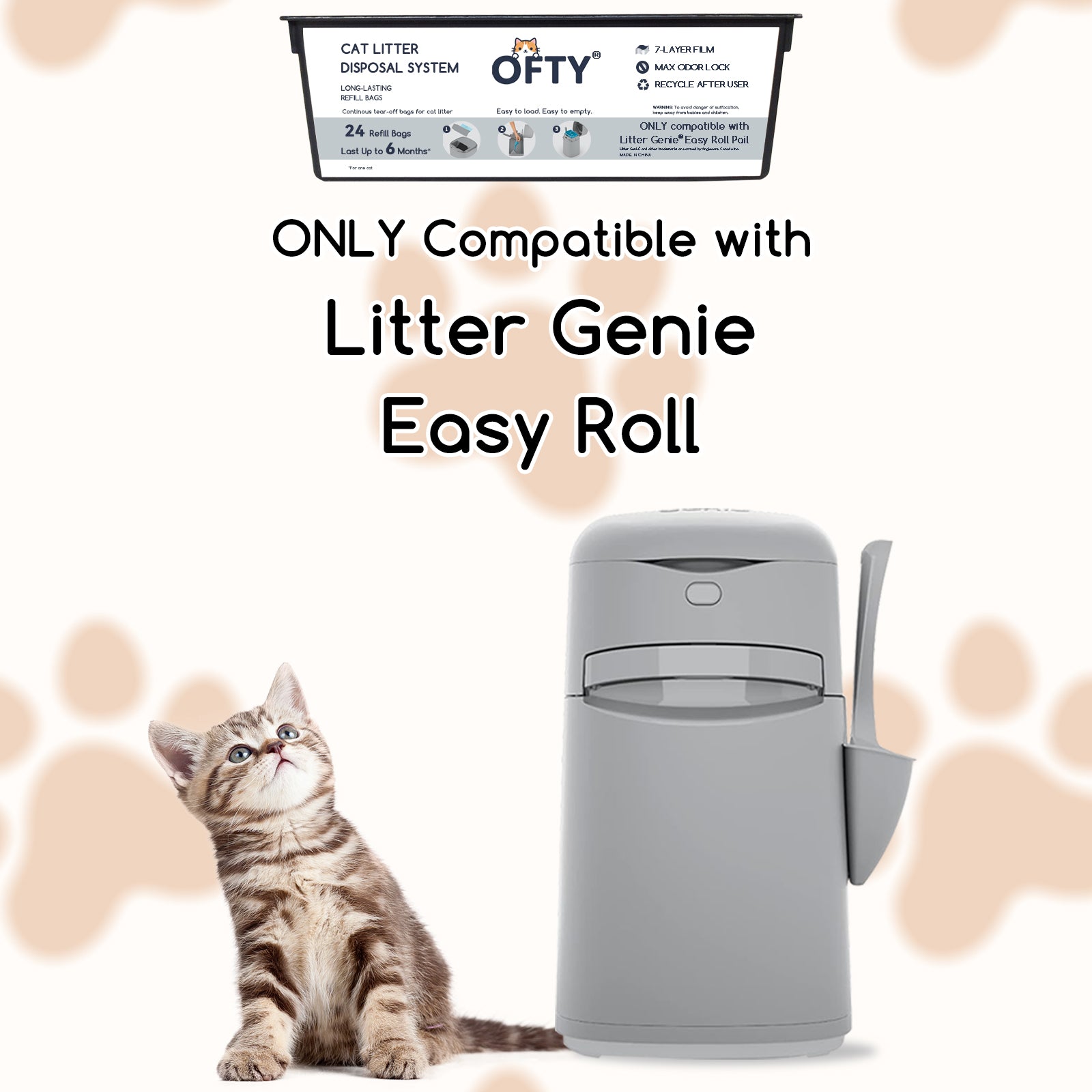The Best Alternative Litter Genie Easy Roll 48 Count: 7-Layer OdorLock Technology, Leakproof Heavy Duty Cat Litter Bags – OFTY