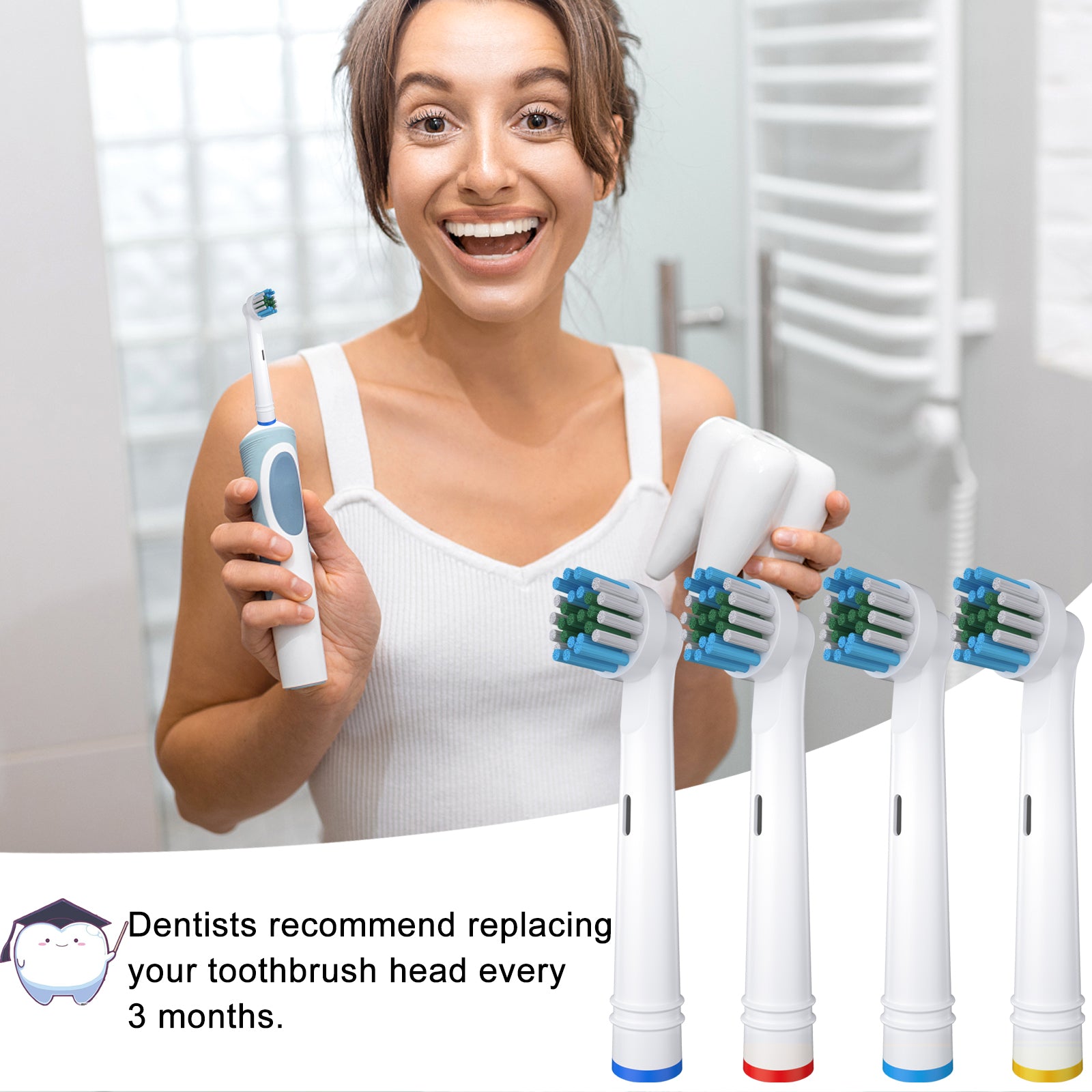 - END-ROUNDED BRISTLES: The design of round tip of replacement toothbrush head offers better clean to your teeth without hurting gums